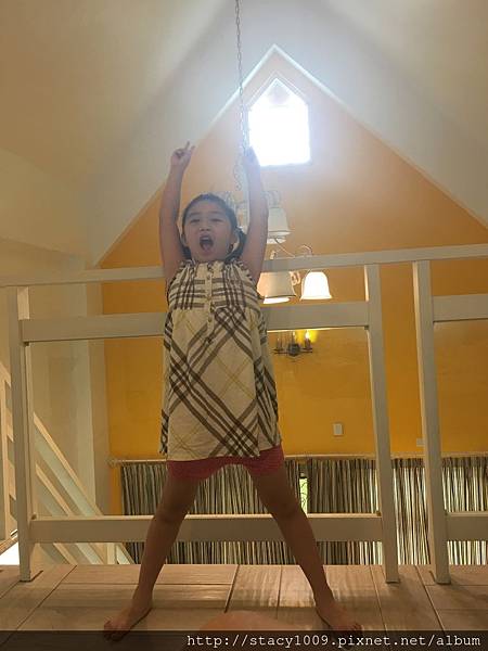 一進入包棟民宿,蓉就愛上了她的溜滑梯小床了,
