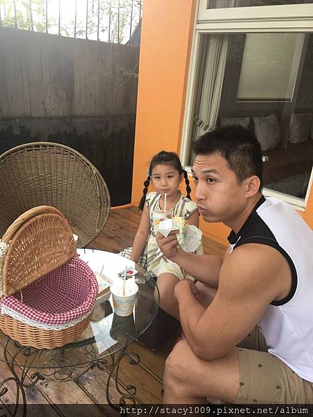 因為前一晚還下著大雨呢!外面庭院不只能吃早餐,